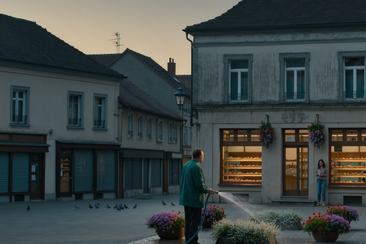 Every morning at six-thirty, before the bakery opened and before the buses began their grumbling loop around the town center, Simon Vale watered the flower beds in Market Square. He…